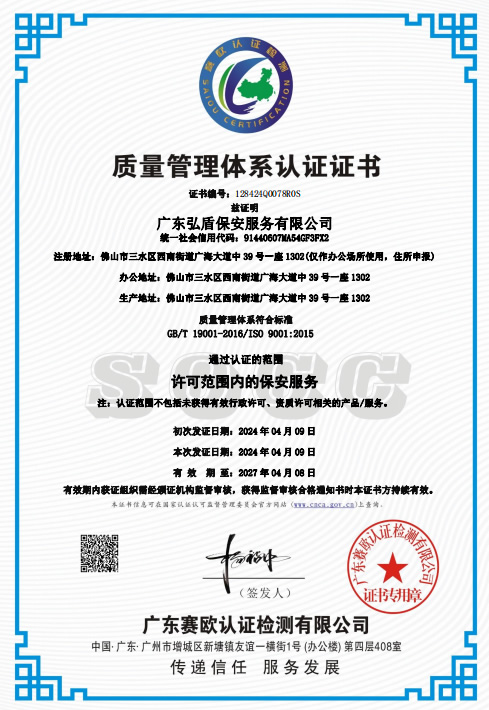 經營優勢:多項國際標準體系認證,各項資質齊全